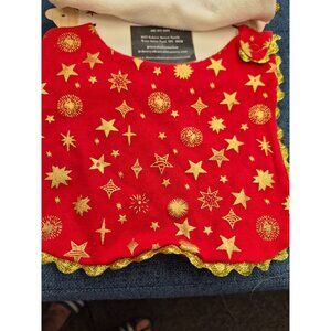 • Gold star print and scalloped trim on red bib