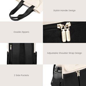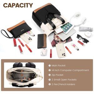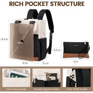 Features: Stylish rectangular daypack with a versatile multi-carry design. Crafted from water-resistant nylon and polyester, it feels lightweight yet durable. 5 spacious pockets, including a dedicated laptop compartment up to 14 inches, make organization a breeze. Zipper closure and cotton cord accents add a modern touch, perfect for staying chic on the go.
