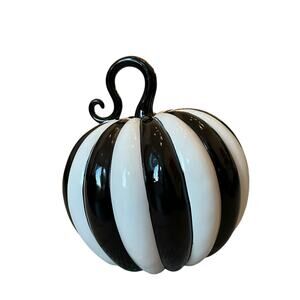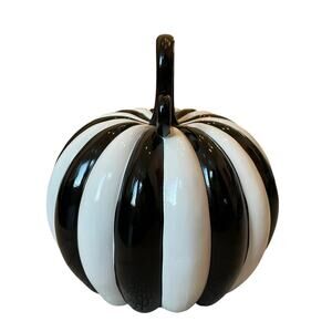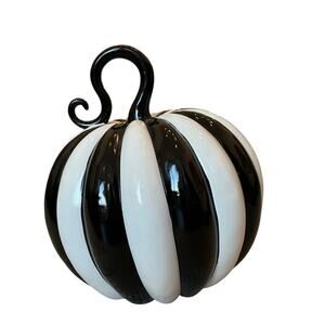 Modern Black & White Striped Pumpkin 12in Chic Fall Designer Home Decor NEW