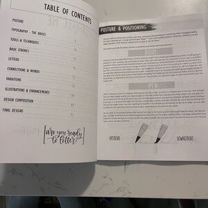 The Ultimate Guide to Modern Calligraphy and Hand Lettering for Beginners. Features a stylish design with blue, black, and pink text.