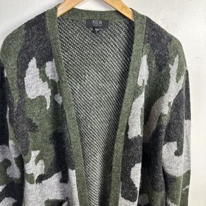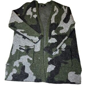 Modern Canvas Large Military Green Gray Camo Open Front Cardigan Sweater Large