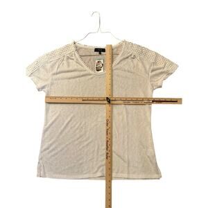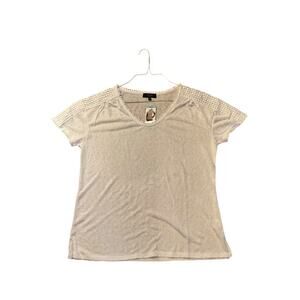 Modern Canvas Shirt Short Sleeves V-Neck Minimalist White Womens Large NWT