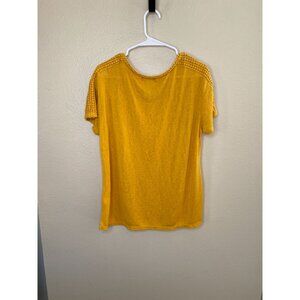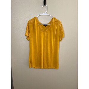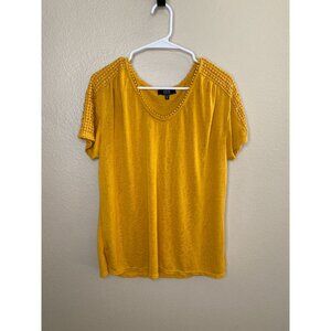 Modern Canvas Womens Mustard Yellow Crochet Sleeve T-Shirt XL Modal Polyester