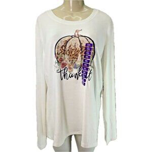 ITEM: Modern Canvas XXL Eggshell Thankful Statement Pumpkin Crew Neck Ribbed Trim Long Sleeve Top