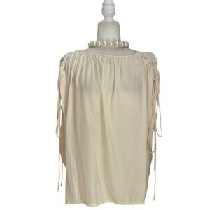Modern Citizen Akari Semi Sheer Gathered Shoulder Blouse NWOT Cream Natural