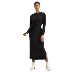 Modern Citizen Audrey Dress Tie Front Long Sleeve Minimalist Chic Black Size M