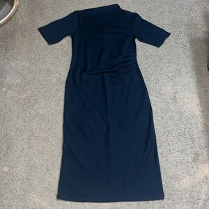 Modern Citizen Evie Ribbed Knit Jersey Ruched Midi Dress Navy Blue Medium