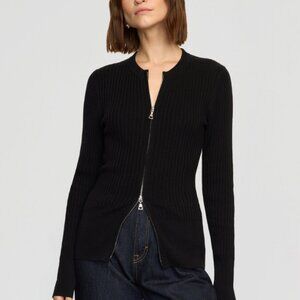 Listing online: https://www.moderncitizen.com/products/kayla-ribbed-two-way-zip-sweater-black?variant=41258470965311