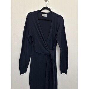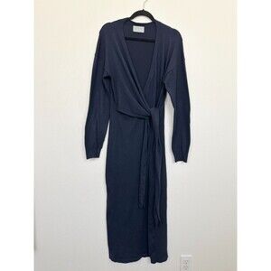 Modern Citizen Lenese Front Wrap Dress Midi Long Sleeve Navy Blue
