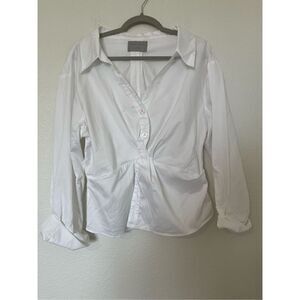 Modern Citizen Long Sleeve Twist Front Blouse in White NEW