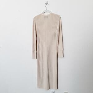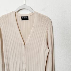 [Modern Citizen] MDRN Beige Ribbed V-Neck Longline Button Cardigan Sweater XL