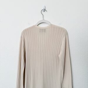 Modern Citizen MDRN Size XL Beige Ribbed V-Neck Longline Button Cardigan Sweater