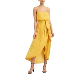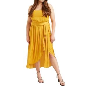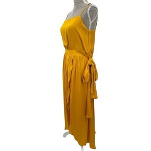 Modern Citizen Mila Tie-Front Layered Tank Midi Dress - Marigold Yellow -Large