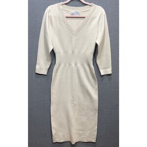 Modern Citizen Off Shoulder V Neck Sweater Knit Midi Dress Beige Sz S NWOT $169