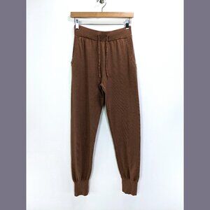 Modern Citizen Size S Womens High Waist Drawstring Knitted Leggings in Brown Tan