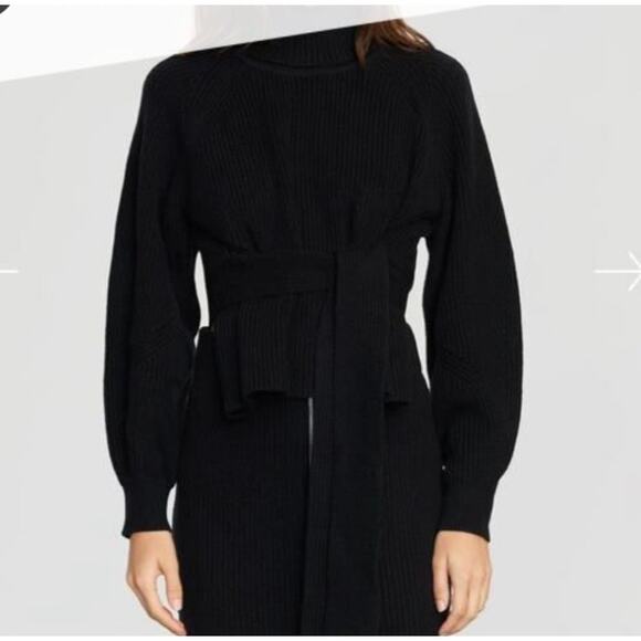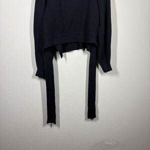 Modern Citizen Small Hiwa Tie Front Sweater Black Cotton Wool Crop Turtleneck