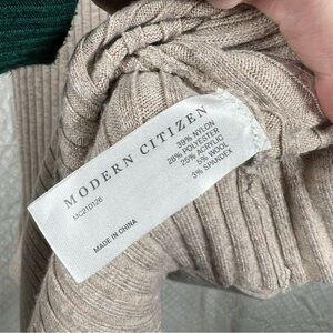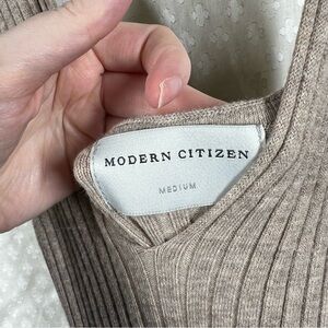 Modern Citizen Tan Ribbed V Neck Bodycon Sweater Dress