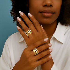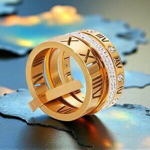 Make a bold statement with this luxe Roman numeral ring! Crafted in durable stainless steel and finished with radiant 18K gold plating, it blends timeless design with a modern stacked look. Sparkling cubic zirconia accents add brilliance and sophistication, while the smooth interior and secure fixed design keep it comfy all day. Unisex and versatile, it pairs with casual tees, office looks, and night-out outfits—perfect for gifting or treating yourself. Designed for durability, this hypoallergenic piece resists tarnish and keeps its shine, making it a long-lasting addition to your jewelry collection.