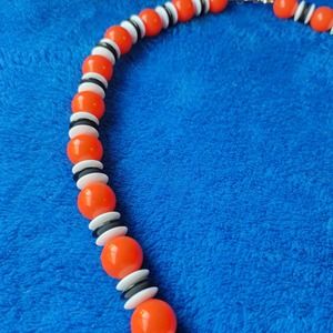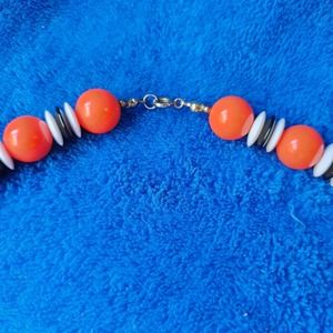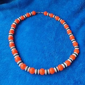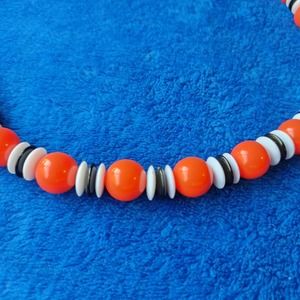 Modern Color Pop Orange Black White Beaded Statement Necklace