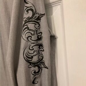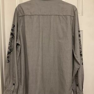 Modern Culture Men’s Gray/Black Fleur Wings Button Down Shirt Size Large