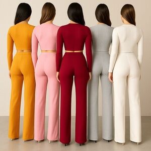 🧵 Crafted from a ribbed knit fabric made with a polyester and spandex blend, this set offers:
