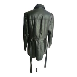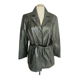Modern Essentials Black Faux Leather Belted Jacket – Size Medium, Minimalist