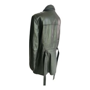 Add an edge to your outerwear with this Modern Essentials black belted jacket. Made from sleek faux leather, this size medium piece features a tailored fit with a notched collar, button front, and a removable tie belt to cinch the waist. The minimalist design makes it a versatile staple for both casual and dressy outfits. Brand: Modern Essentials Size: Medium Color: Black Style: Belted faux leather jacket Features: Button-front closure Notched collar Removable tie waist belt Side pockets Condition: Excellent pre-owned condition 🖤 A polished layer for transitional weather or a chic night out look. #FauxLeatherJacket #ModernEssentials #SizeMedium #WomensOuterwear #ChicStyle #BeltedJacket #VeganLeather #MinimalistFashion #FallStyle #BlackJacket