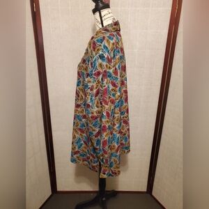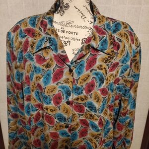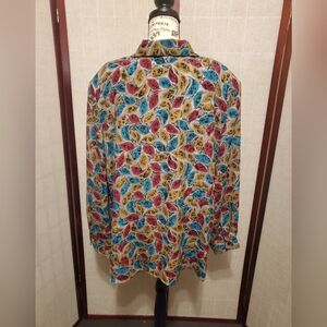 Multi-colored, floral, long sleeve, button-up blouse with shoulder pads. Women's size 22W. Excellent used condition.