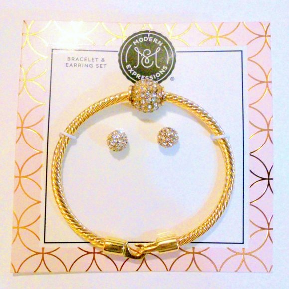 Modern Expressions Pave Set Rhinestone Ball Bracelet & Earrings Demi Set