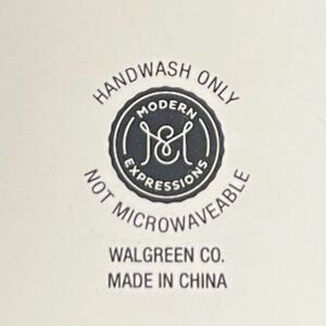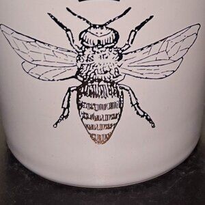 Modern Expressions white ceramic mug with both sides featuring a graphic of a metallic gold queen bee below a metallic gold crown. Large and comfortable, shiny metallic gold handle. Measures 4.25” tall with a 3.75” diameter. 5.5” across including the handle. Holds 16 fluid oz. From Modern Expressions; Walgreen Co.