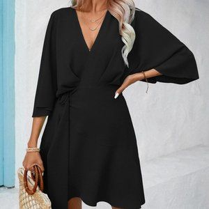 Modern Fit Batwing Sleeve Ruffle Hem Wrap Knot Side Dress