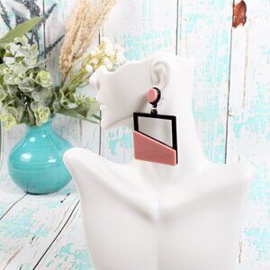 Modern Geometric Dangle Earrings - Pink & Black Statement