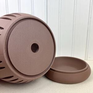 Add a warm, artistic touch to your home with this beautifully designed 3D printed planter, featuring a unique cutout pattern that blends modern minimalism with organic texture.Printed with a matte material, this round plant pot brings sophistication and style to any plant display. The elongated oval cutouts create a striking layered effect, allowing subtle glimpses of the inner structure and adding dimension from every angle. Perfect for houseplants, succulents, or herbs, this planter includes a matching base to help catch excess water and protect your surfaces.