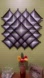 A dramatic, 23.5” square geometric string art sculpture created from hand-wrapped wood dowels and layered gradient threadwork. Each diamond panel forms part of a larger symmetrical grid, creating a hypnotic, architectural wall piece with incredible texture and depth.