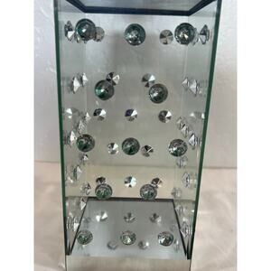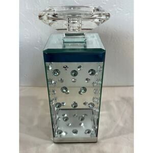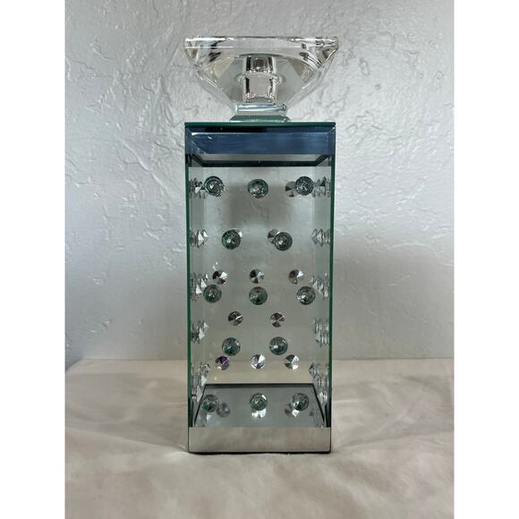 Modern Glass Crystal Studded Pillar Candle Holder Decor 10 Inch