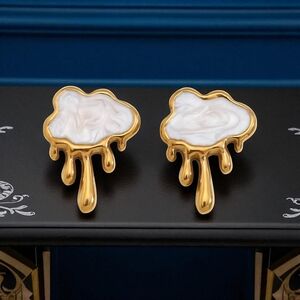 Add an edgy twist to your jewelry collection with this bold and artistic 2-piece necklace and earrings set! ✨ Featuring an abstract drip cloud design, this modern statement set blends a high-fashion look with unique fluidity. Each piece is crafted from durable stainless steel and luxuriously coated in 18K gold plating. The irregular shape and mother-of-pearl-style resin center create an irresistible fusion of glamour and individuality. Perfect for gifting or keeping all to yourself! 💛🎁