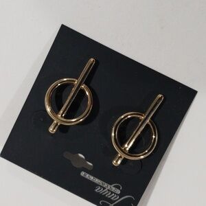 Modern Gold Tone Geometric Bar & Hoop Stud 1.5 Drop Earrings – Trendy Jewelry