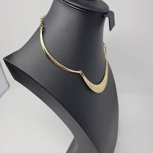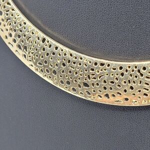 Modern Gold Tone Hammered Perforated Filigree Metal Choker Collar Jewelry Gift