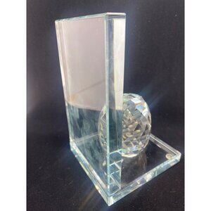 Modern Heavy Lead Crystal Ball Cut Glass Bookend Square 4.5'' Tall