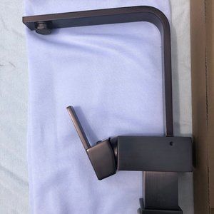 This square Modern Kitchen faucet in Oil Rubbed Bronze finish is destined to impress. Single handle, Single hole, Deck mounted. Brass valve core material. Ceramic plate spool. Modern design with pivoting spout. Height Appx: 10" Spout Reach: