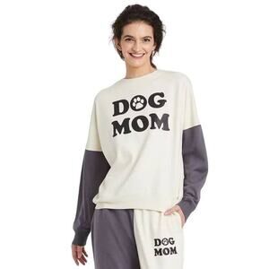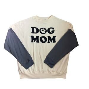 Modern Lux Dog Mom Colorblock Graphic Sweatshirt Off-White Gray Size Small