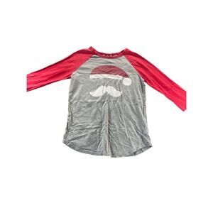 Modern Lux Girls Gray Red Santa Claus Long Sleeve Shirt Youth Size Medium