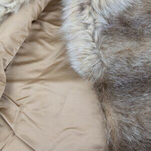 So soft & plush! Gorgeous tan faux fur vest with a fluffy cream collar that looks like real fox — but totally cruelty-free 🦊💫