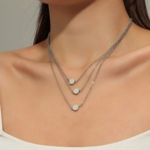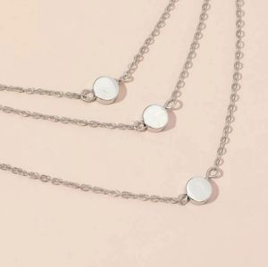 Modern Minimalist Geometric Circle Disks Layered Pendant Silver Necklace
