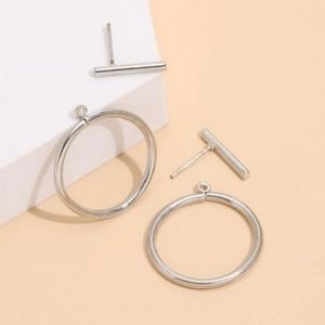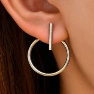 Modern Minimalist Silver Hoop and Bar Wrap Earrings