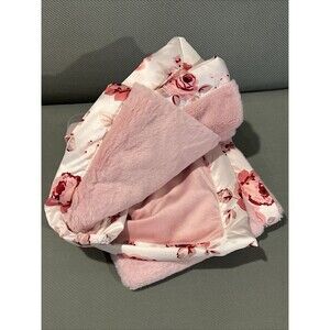 Modern Moments By Gerber Pink Plush Baby Blanket Satin Trim Floral Flowers NEW