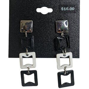 Modern Ophelia Roe Black & White Geometric Drop Silver Tone Earrings