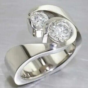 Stunningly gorgeous 925 Sterling Silver Ring with a .75 Carat Solitaire and a .50 Carat Solitaire - Lab Created Cubic Zirconia