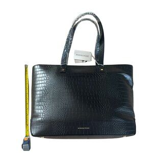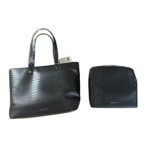 Modern Picnic Black Tote Hand Bag Vegan Leather with Lunch Box