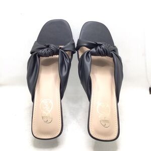 Modern Rebel Womens Mr. Fancy Black Knot Front Kitten Heeled Sandals. New in box. From smoke free home.